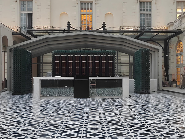 Chengdu’s iconic Louis Castle, renowned as China’s largest complex of French-style architecture, has elevated its guest experience to new heights. This grand commercial hub—encompassing a hotel, wedding services, exhibitions, and dining—now features a breathtaking and highly functional outdoor wedding and restaurant space, thanks to a monumental engineering feat by Sunrim. The centerpiece is a colossal **30-meter long, 13-meter span, and 5.5-meter high retractable solarium, a transformative structure that seamlessly blends architectural elegance with unparalleled flexibility.