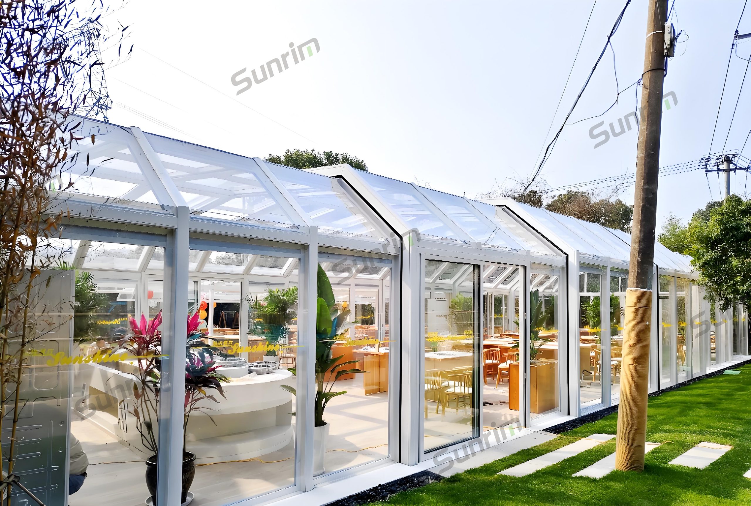 Fully Closed Mode, A Serene Sanctuary: In the face of sudden rain, summer heat, or winter chill, the sunroom transforms within minutes into a crystal-clear glass sanctuary. Its tightly sealed structure provides clients with a stable, comfortable indoor environment, ensuring that high-end events proceed gracefully, regardless of the weather.