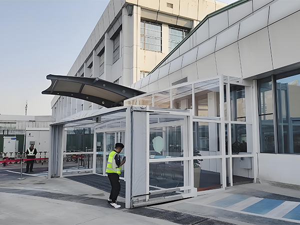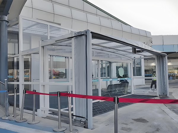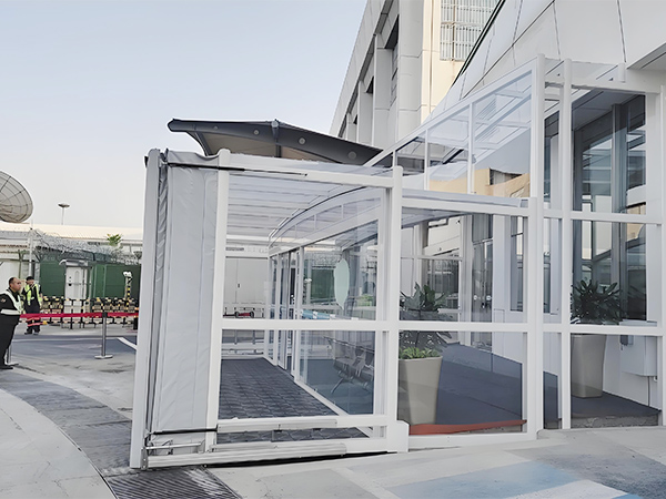 Beijing Capital Airport T1 Terminal Electric Retractable Connecting Corridor Project, to solve the problem of passengers between the boarding gate and the ferry rain, Sunrim electric retractable connecting corridor application, to give passengers a very good boarding experience, which is also the second public service project after the Guangzhou Zhujiang New Era Party Members Stage Project.