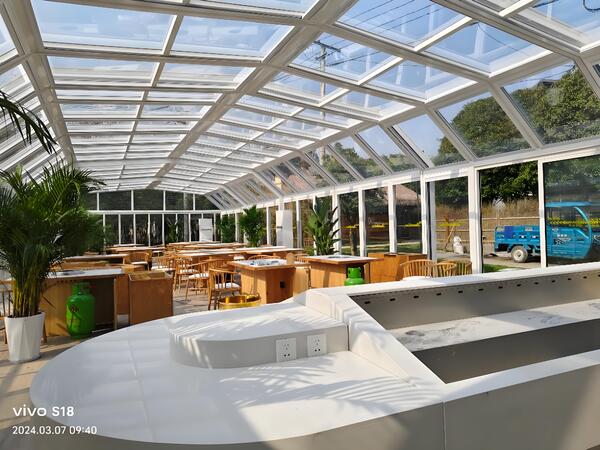 Project Background: The outdoor restaurant, nestled in the heart of the Jingshan Scenic Area, is a popular destination for visitors seeking a unique dining experience amidst nature. However, the existing indoor space was insufficient to accommodate the growing number of guests, especially during peak seasons or adverse weather conditions. To solve this issue, Taikang Group sought a solution that would provide additional space, ensure quick installation, and maintain the aesthetic harmony of the environment. — The Solution: Retractable Sunroom: After careful consideration, Taikang Group opted for a Retractable and retractable sunroom. This innovative structure offers the perfect blend of functionality, aesthetics, and efficiency. Here’s why this solution was chosen: •Quick Installation: The Retractable sunroom was designed for rapid deployment, allowing the project to be completed within a short timeframe. This minimized disruption to the restaurant’s operations and ensured that the space could be utilized as soon as possible. •Seamless Integration with Nature : The sunroom’s transparent design allows guests to enjoy uninterrupted views of the stunning Jingshan Scenic Area. Whether the roof is open or closed, diners can immerse themselves in the beauty of the surrounding mountains, forests, and sky. •Flexible Space Utilization : The retractable feature of the sunroom provides unparalleled flexibility. On sunny days, the roof can be opened to create an open-air dining experience. During rain or extreme weather, the roof can be closed to offer protection while still maintaining a connection to the outdoors. •Aesthetic Appeal: The sunroom’s sleek, modern design complements the natural surroundings and enhances the overall ambiance of the restaurant. Its minimalist structure ensures that it does not detract from the scenic beauty of the area. •Enhanced Guest Experience : By expanding the usable space and providing a comfortable environment in all weather conditions, the Retractable sunroom significantly improves the dining experience for guests. It also allows the restaurant to host more visitors, increasing its capacity and revenue potential. — Key Features of the Retractable Sunroom •Retractable Roof:Allows for easy adjustment between open and closed configurations. — Project Impact: The installation of the Retractable sunroom has transformed Taikang Group’s outdoor restaurant into a versatile, all-weather dining destination. It has not only addressed the space constraints but also elevated the overall guest experience by blending functionality with the natural beauty of the Jingshan Scenic Area. This project reflects Taikang Group’s commitment to innovation, sustainability, and customer satisfaction. — Conclusion: Taikang Group’s Retractable sunroom project in Hangzhou’s Jingshan Scenic Area is a testament to the company’s forward-thinking approach and dedication to creating exceptional spaces. By combining practicality with aesthetic appeal, this installation has set a new standard for outdoor dining experiences. Whether enjoying a meal under the open sky or sheltered from the elements, guests can now fully appreciate the breathtaking surroundings while indulging in the restaurant’s offerings. This project is a shining example of how innovative design can harmonize with nature to create unforgettable experiences.